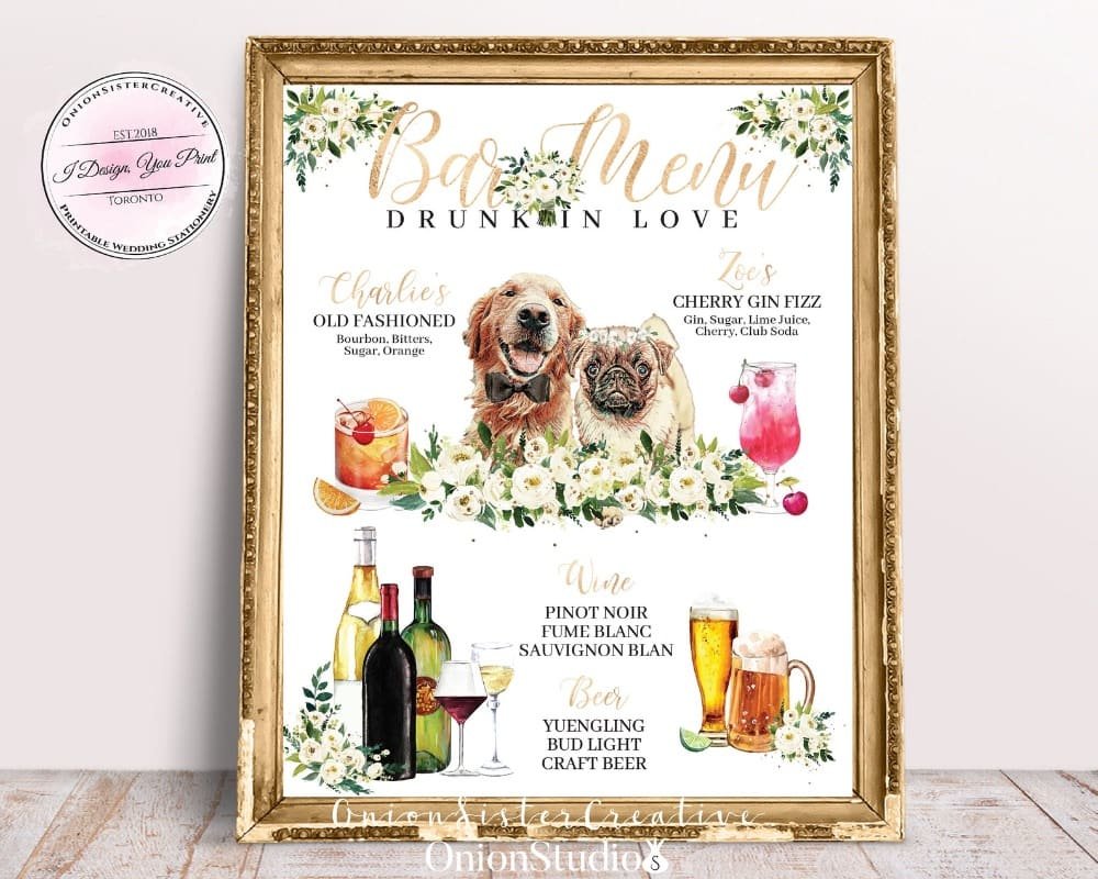 Instant Download Bar Menu Sign Wedding Bar Sign Wedding Bar Menu Pri Paperandthings